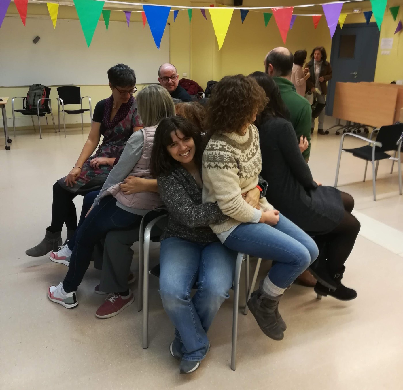 Si voleu seguir el fil aquí podeu trobar el dia 1 i el dia 3. Les nostres expectatives per la dinamització d’entrada es van veure superades per molt, i vam començar la sessió amb molt bones vibracions: la Pilar i la Mercè ens van posar música, aromes cítrics per activar-nos i ens van fer jugar al joc de les cadires col·laboratiu que podeu veure a la imatge que encapçala l’entrada.